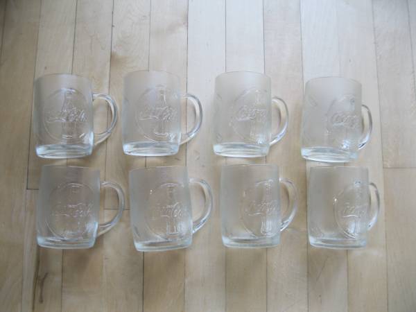 Coca Cola 8 Vintage Frosted Drinking Glass Mug Embossed Bottle $10 -...