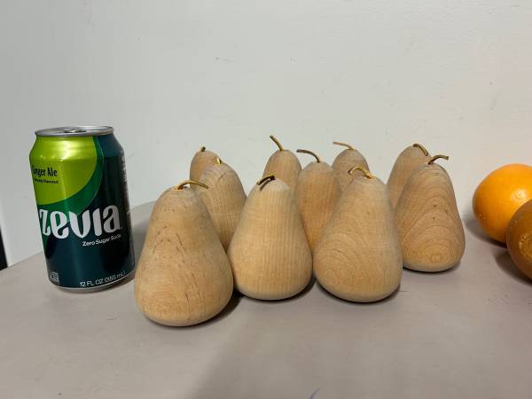 10 wood pears with leather stems $15