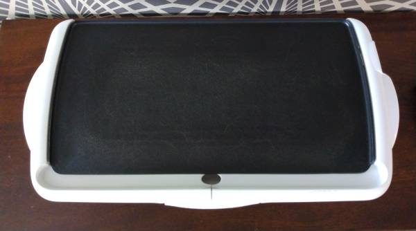 Features: Nonstick surface, Plastic frame that stays cool, Adjustable temperature, Fully Immersible for easy cleaning, Grease tray that is removable