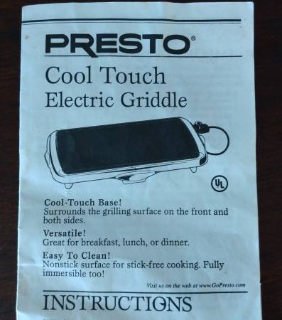 This is a duplicate griddle that my mother-in-law had when she was a snow-bird. She doesn't have the desire or space to keep two in her kitchen now that snow-birding has ended. I am helping her re-home some great things she took wonderful care of. I'll even share her tasty buttermilk pancake recipe (swedish style--thin and yummy)