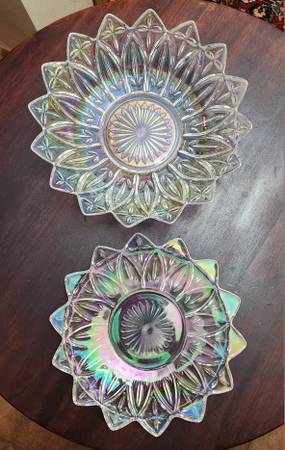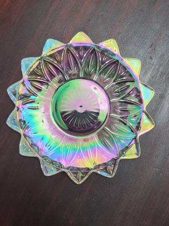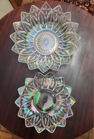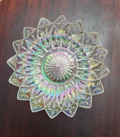 Vintage Federal Glass Bowl and Plate Starbust Carnival Clear Glass