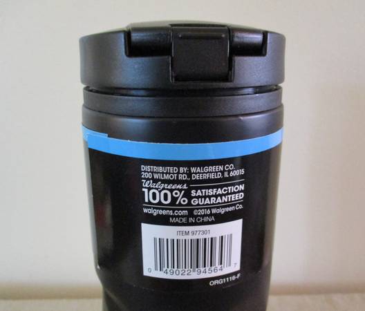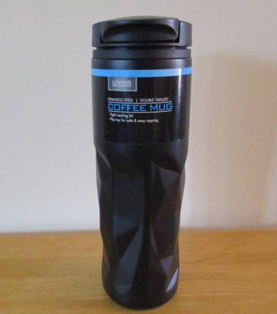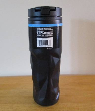 Double-Wall insulation keeps beverages hotter longer. Tight sealing lid. Flip top for safe and easy sipping. Car cup friendly. Felt bottom. Black. Holds approximately 16 ounces. Made in China.