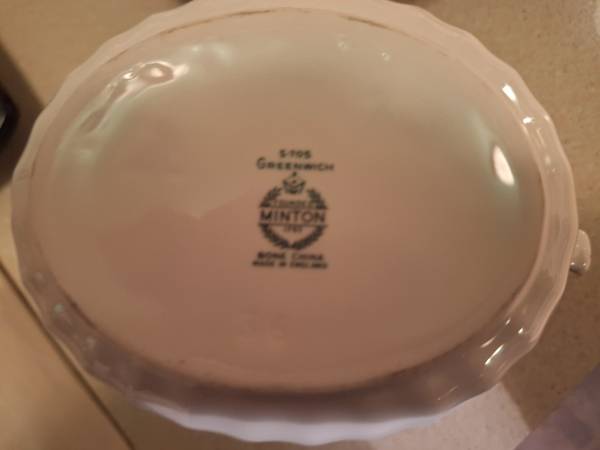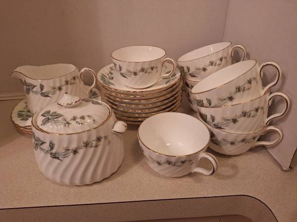 22 PC set of Minton Greenwich Pattern coffee/desert set. Mint condition. 8 cups & saucers, 3- 6.25 desert plates, 1 creamer, 1 covered sugar. All in mint condition. Pickup only in Robbinsdale MN. Cash only. Give me a call show contact info