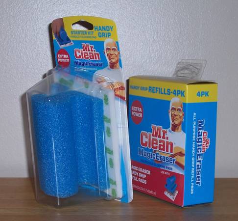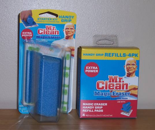 Products Included in Listing: Mr. Clean Magic Eraser Handy Grip Starter Kit (One Handle/One Cleaning Pad) and 4-Count Box of Magic Eraser Handy Grip Refill Pads.