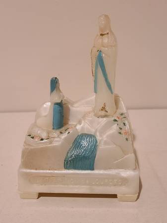 Vintage Plastic L'APPARITION de LOURDES Music Box 5" Tall x 3" Wide ' 2" Deep