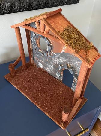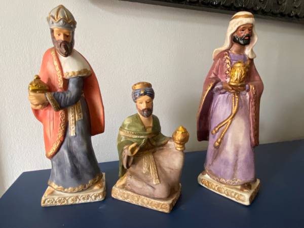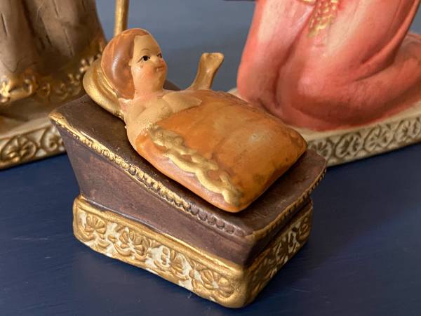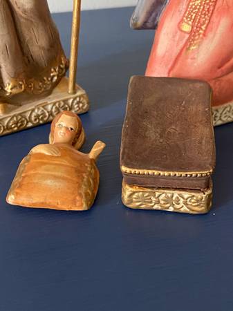 Cute decoration holiday Christmas Xmas set front house up decoration decorate figure vintage style collection set sets figures nativity scene Holy Family gold, frankincense, and myrrh magi