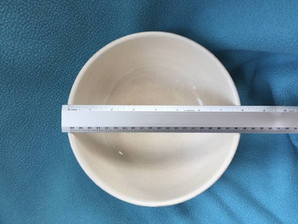 Measures 8" across and about 3.5" deep.
