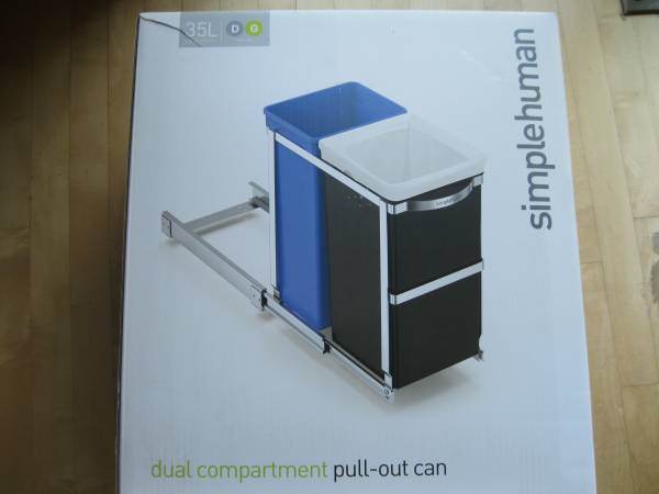 New. Box and manual included. The simplehuman easy-to-install pull-out recycling kitchen bin glides out of the cupboard on smooth commercial-grade ball-bearing tracks for quick and easy access