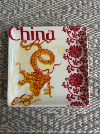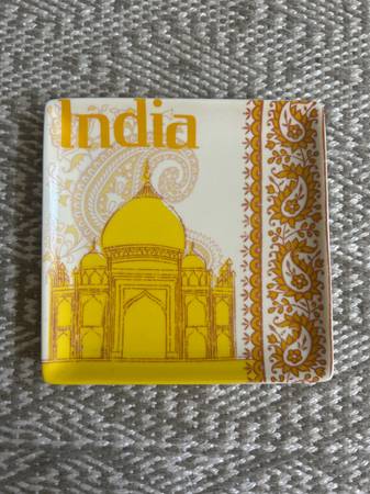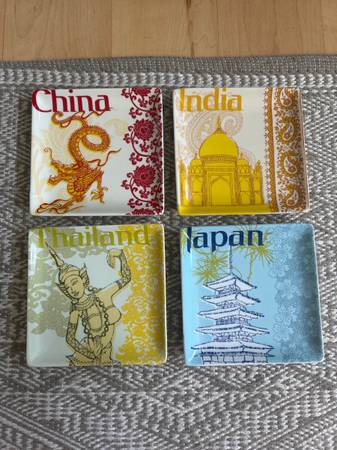 Sushi Plate Set (4) - Japan - India - Thailand - China (6x6") Comes with a white ceramic sake carafe.