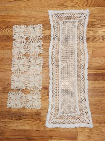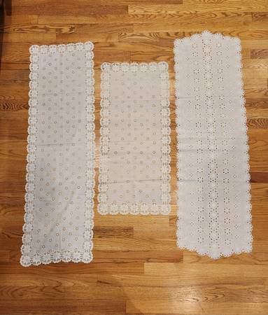 $20.00 Each Sizes Range 34.5" - 25.5" x 20" - 12" Linen, Lace, Crochet, Etc Will Sell Separately