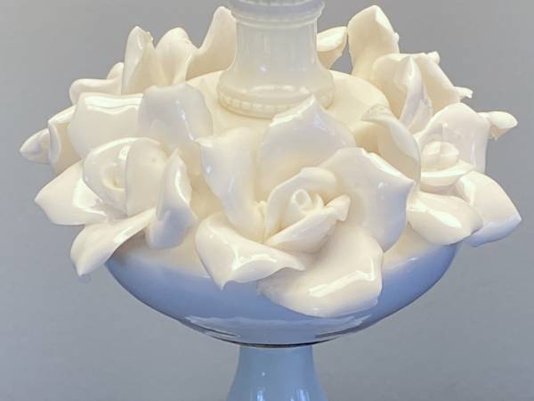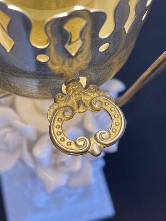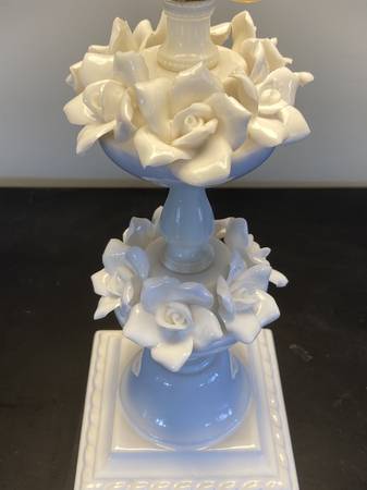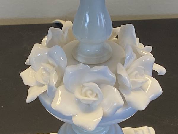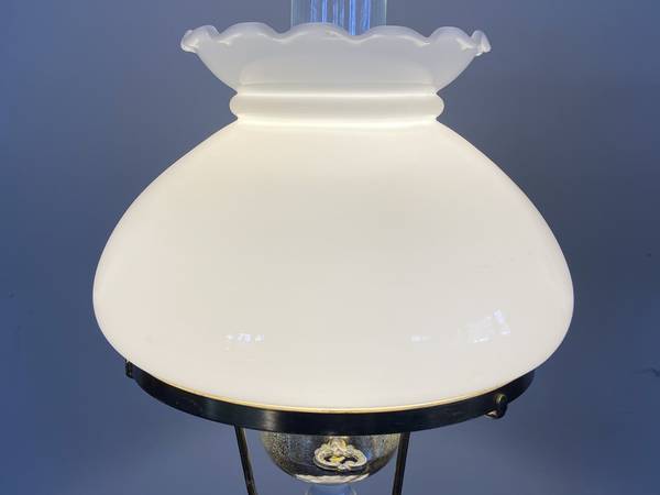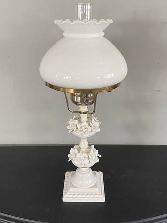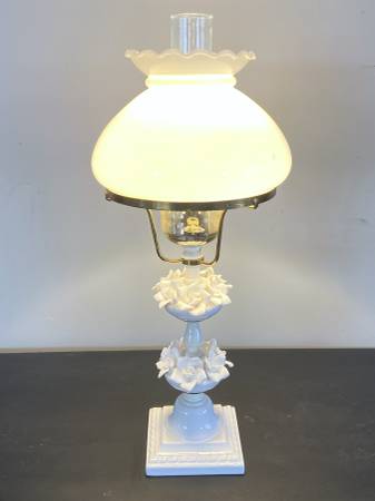Table Top Lamps asking $25 each or $45 for both White Glass Floral Oil Lamp style Electric Parlor Lamp, Antique Bedside Table Flowers lantern 19.5 inches tall glass shade one bulb turn key switch...