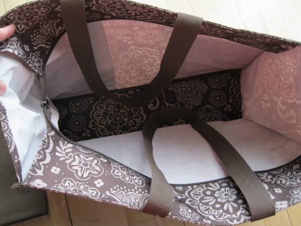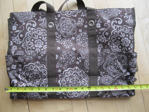 $15 Super Organizing Top Zip Utility Tote Brown Woodblock Floral Print - Retails: $50