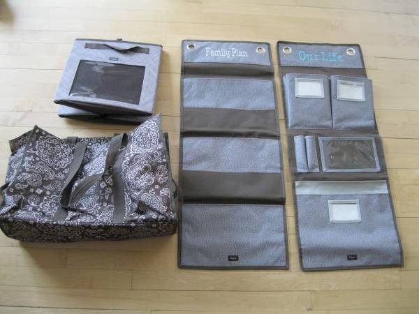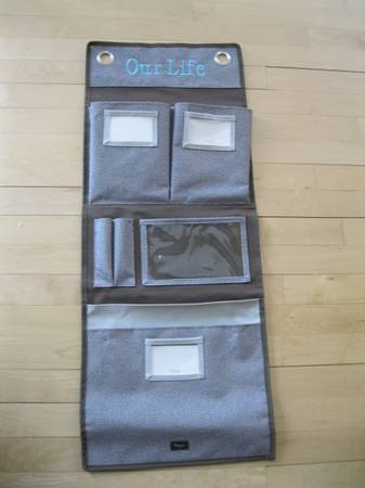 $10 "Our Life" Hang Up Family Organizer Grey Pin Dots Print - Retails: $25 + $10 Monogram