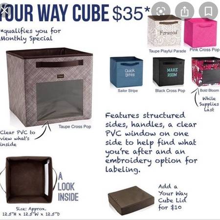 $10 Your Way Cube Bin Taupe Cross Pop Print - Retails: $35