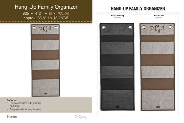 $10 "Family Life" Hang Up Family Organizer Grey Pin Dots Print - Retails: $25 + $10 Monogram