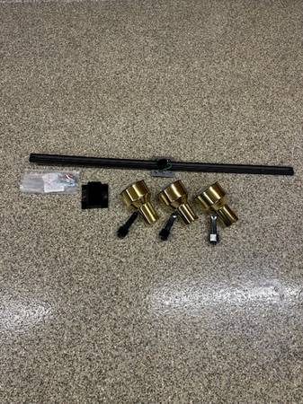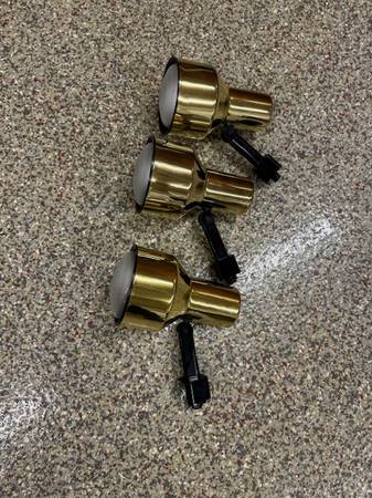 TRACK LIGHT - H Track -3 1/2FT TRACK with 2 endcaps (BLACK) -3 TRACK LIGHTS - GOLD- (75 watt flood bulb included) -H Series floating canopy connector Excellent condition