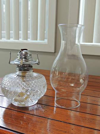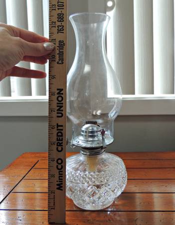 This is a gorgeous, working oil lamp that I love just to look at! It's a petite marvel at 13" high total, so it can go on most any table. Great when the electricity goes out!