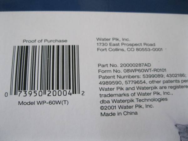Waterpik Classic Countertop Water Flosser White WP-60 NEW $10 -...