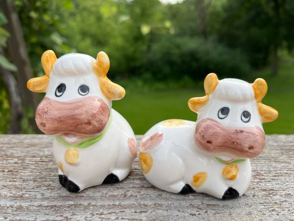 Cow Salt and Pepper Shakers in a Basket Purchased in Germany