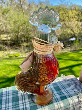 Glass Rooster Infused With Chili Pepper Vinegar - $59