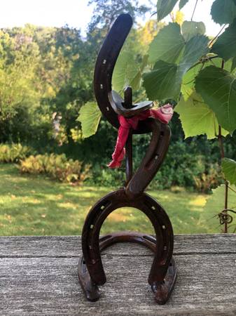 Western Cast Iron Horseshoe Cowboy Folk Art 3 Horseshoes are from St. Croix Forge Nice Art Piece for Outdoor Barbecue Area or Bar or Office Great Gift!