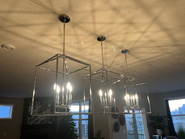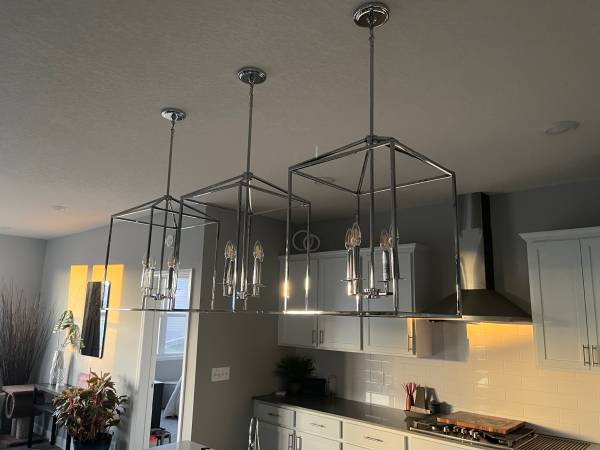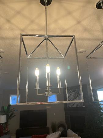 I have 3 Perryton pendant 4 bulb-Light Chrome Transitional Schoolhouse hanging pendant lights for sale, moved into a new home, they came with the home, but are too large for my taste.
