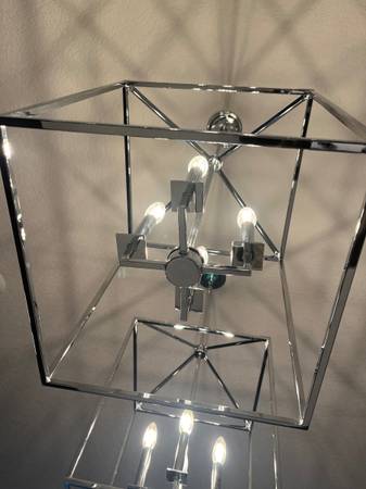 The 4-light indoor pendant in chrome enhances the beauty of your home with ample light and style to match today's trends. Inspired by stately carriage lanterns, Features an updated open frame with sleek square steel tubing