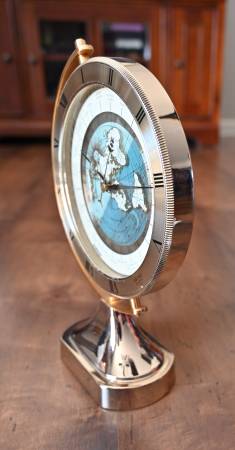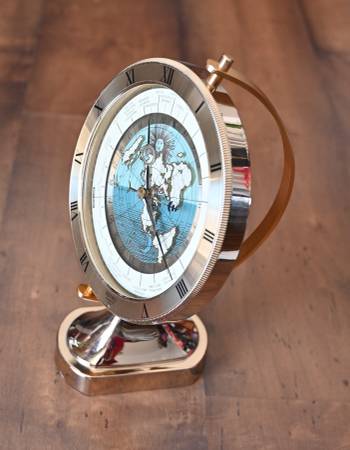 Measures approximately 12 inches tall by 9 inches wide, clock rotates on axis similar to a globe.