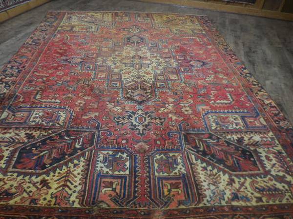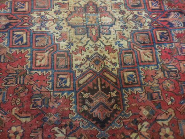 This HERIZ was constructed of 100% virgin wool, woven into a cotton warp, and the woolen yarns were colored with vegetable dyes, for a richer look than the harsher looking/less expensive, chemical dyed rugs used on newer lesser quality rugs. It's a beautiful piece, with a traditional and highly detailed design that can be used in many ways. This rug features 140 KPSI (knots per square inch), with a total of about 2.5 MM knots, and it took about 3000 hours of labor to hand knot this piece. It is of excellent quality, consistent with what we would expect in a very good quality Persian Oriental rug.