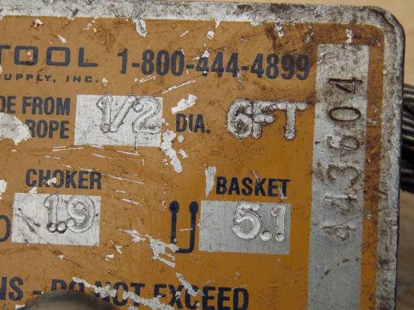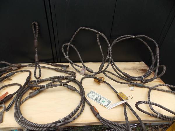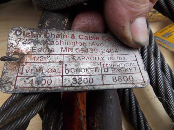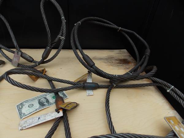 For this Low Price you get all (10) of these USA made Professional Quality Brand Certified Vertical, Choker or Basket Lifting Slings (most are 5,000lb Lifting and 10,000Lb. Basket) Eye and Eye 1/2" diameter Heavy Cable Rope-wire Lifting and Pulling Slings. These tough and reliable wire rope slings offer superior weight capacity and stands up to any lifting challenge. Built with USA-made materials, it offers total peace of mind when it comes to overhead lifting. Call (952)854-5 seven eight six