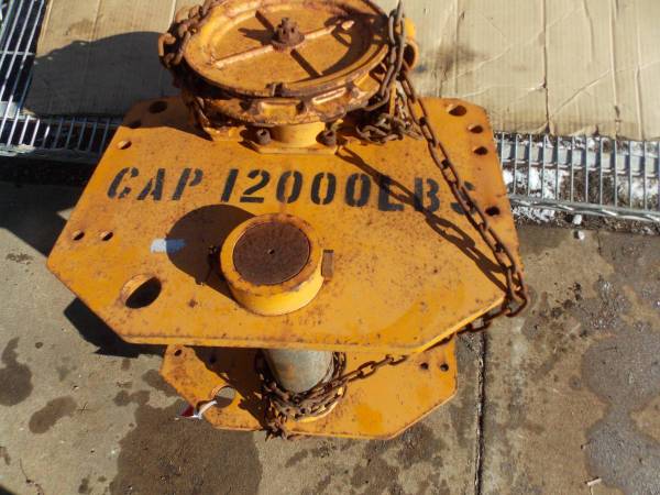 Here we have (2) identical Harrington Chain Drive units (sorry one has been sold). They are adjustable width from 10" wide I Beam to 14" wide. Capacity 10 tons or 20,000 Lbs. . But on the other side it says 12,000 or 6 tons?? we don't know why(The Harrington Tag 10Ton should be the correct capacity that OSHA should approve. We have 2 of these if you want both. The 6" diameter solid wheels can handle a flat bottom I-Beam ,or a tapered style. We deal with many Trolleys, but rarely this Industrial size.The Chain Drives run both wheels on one side, and the 2 wheels on the other spin nice and freely. Oh, 2-3/4" solid bar connects the (2) 3/4" thick side plates. These were probably well over $2,800.00 when new, and they will work just as good now.. Call and we can help you hopefully (952)854-5 seven eight six