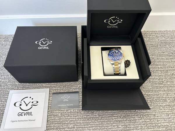 Authentic Men's GV2 by GEVRIL Liguria Diver - LIMITED EDITION - Royal BLUE 42mm Ceramic Dial - Two-tone Stainless Steel - Swiss Made Automatic Watch