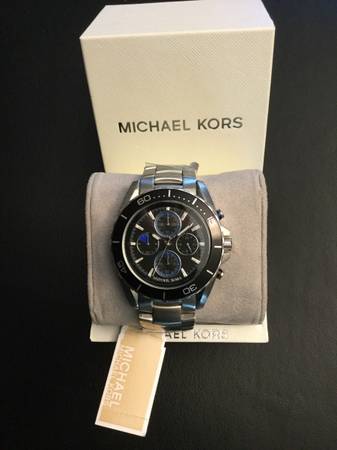 Authentic Men's MICHAEL KORS Jetmaster - Chronograph - BLACK 43mm Dial - Stainless Steel Watch