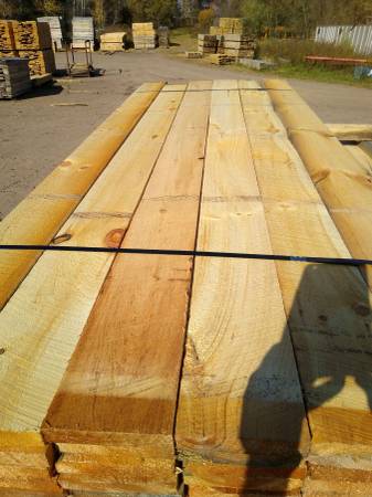 6"' 8"; 10"; 12" and random width knotty white pine circle sawed; KD We do tongue and grooved and shiplap as well. Delivery available 715=458-65 zero zero