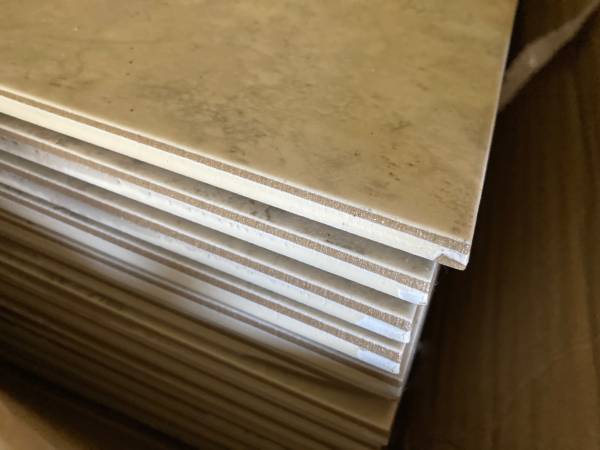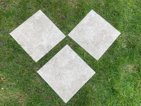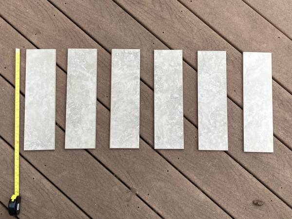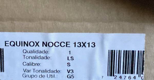 26 pieces Dimensions: 13" x 13" Equinox Nocce by Roca Tile Group (Shown in two different lights) PLUS 6 pieces of same tile with different size: Dimensions: 13" x 3 3/4"