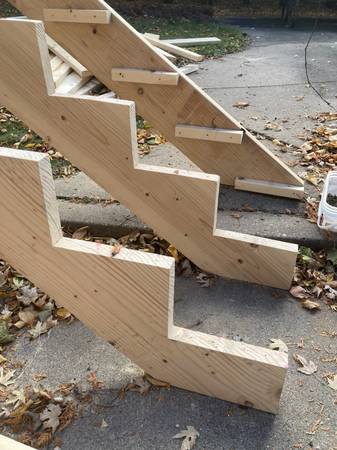 Temporary Staircase 4 stringers approx. 14' 48" tread material Slope 7.5"/10" Overall rise/run approx. 8.5'/11.5'