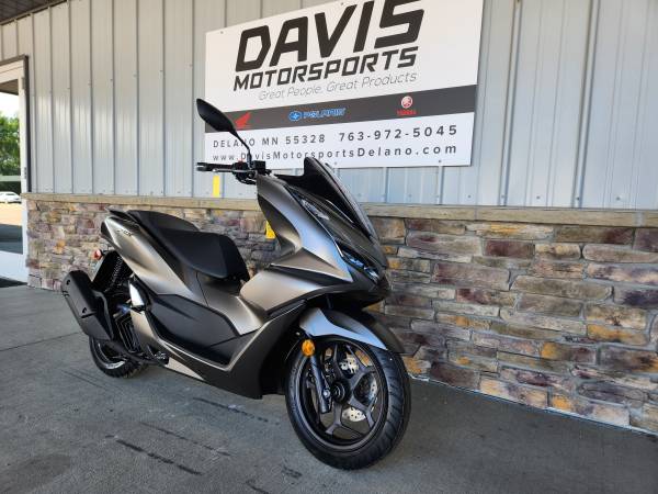 GET YOUR 2024 HONDA PCX 150A WITH ABS FOR ONLY $ 4,199.00 NOW AT DAVIS MOTORSPORTS IN DELANO. NO FREIGHT OR SET UP CHARGES! YOU SAVE $ 650.00 NOW! MSRP on this scooter, model # PCX150A is $ 4,249.00 + $ 600.00 freight. The Honda PCX is not just any scooter, it is a smart and adaptable solution for city dwellers that’s fun to ride. With the ability to smoothly navigate through traffic, finding convenient parking spots becomes a breeze, and you can trust in Honda's impeccable build quality. The urban scooter comes with spacious underseat storage and excellent fuel efficiency, making it perfect for daily errands and commuting to classes. Additionally, every ride is not only enjoyable but also safe as it is equipped with standard front-wheel ABS. The liquid-cooled engine displaces 157cc, for plenty of get-up-and-go. The eSP+ technology (enhanced smart power) uses a four-valve design with a bore/stroke ratio specially designed to lower emissions and provide responsive performance. Turn the key, press the button, and the fuel-injected engine starts right up and runs smoothly, even in colder weather. With the Honda V-Matic™ automatic transmission, just start the engine, twist the throttle and go. That means no shifting, ever—you concentrate on the road ahead and enjoy the ride! The PCX150A offers Honda's front-wheel Anti-Lock Braking System (ABS), giving you the power to make confident stops, even in less-than-ideal conditions. Featuring an integral USB-type socket in the fairing storage compartment, it makes it super easy to keep your personal electronics charged up while you’re on the go. Enjoy world-class style and premium features, like the large, central LED headlight, integrated LED turn signals, and easy-to-read LCD instrumentation, all which help give it a premium look and feel. Flip the seat open and you’ll see a surprisingly large amount of storage room, enough for most full-face helmets or an evening’s worth of groceries. The main compartment locks for security and is weather-resistant, too. Great finance options on approved credit. Price does no reflect applicable freight, tax, and license fees. All rebates to dealer. Get you Honda PCX 150 at Davis Motorsports in Delano or call us at 763.972.5045 if you have questions. vespa zuma original