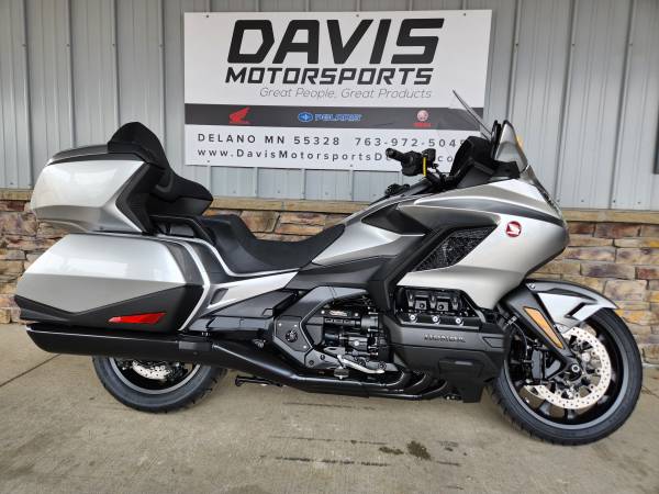 NOW IN STOCK!! 2025 HONDA GOLD WING TOUR WITH 7 SPEED DCT AUTO TRANSMISSION FOR ONLY $ 29,700.00 AT DAVIS MOTORSPORTS IN DELANO. FRE FREIGHT, SAVE NOW! RESERVE YOURS NOW! Limited availability on 2025 models! MSRP on this bike is $ 29,700.00 + $ 775.00 freight. Luxury is not just riding to your dream destinations; it’s doing it with someone on the back and endless road ahead. The Gold Wing Tour lineup is legendary for that very reason. And the 50th Anniversary Gold Wing? Well, it's the culmination of five decades of engineering excellence resulting in unmatched comfort, performance, innovation and control. Powered by Honda's horizontally opposed six-cylinder engine is famously smooth and powerful. The latest version is an 1833cc design that’s over 13 pounds lighter than previous generations. This engine delivers 125 HP as well as 125 ft./lbs of torque right out of the box! This model features Honda's industry exclusive seven-speed automatic Dual-Clutch Transmission (DCT), the shifts are fast and smooth, and the overdrive seventh gear is perfect for highway cruising. At your choice, with the flip of a switch you can paddle shift this 7 speed with handlebar mounted controls for shifts that meet your riding needs. The DCT models offer an exclusive low-speed reverse that uses engine power as well as a forward walking mode. Both systems make maneuvering your bike out of parking spaces easier, especially if you need to roll back up an incline. Another cool feature, Hill Start Assist (HSA). This feature momentarily holds your motorcycle’s position on inclines after you’ve released the brakes and before you apply the throttle, eliminating any roll-back. Honda Selectable Torque Control (HSTC) monitors your bike’s rear-wheel speed and instantly adjusts torque. It’s a great feature when riding in the rain or anywhere where surface conditions compromise traction. The engine offers a wide range of user-friendly power, and you can even choose between four ride modes (Tour, Sport, Rain, and Econ), with each mode varying the power output so you can tailor the bike to your current riding conditions. All models are equipped with Honda combined Anti-Lock Braking System (ABS) for excellent stopping power under a wide variety of road and traction conditions. The radical double-wishbone front suspension delivers stellar handling and gives the bike a sleek, sporty appearance. The innovative design changes the wheel's path, letting us move both the engine and rider/passenger closer to the front wheel. Using Honda's exclusive, proprietary single-sided Pro Arm® design, the aluminum swingarm houses the shaft drive. The swingarm links to the frame using a patented pivot structure that both increases stiffness and reduces weight, so you get responsive handling and a smoother ride. Every model is equipped with a big, bright, seven-inch, full-color TFT LCD screen to display routes and other navigation information. Plus, since it’s equipped with a gyrocompass, the system even functions inside a tunnel. Our current speakers have a high 55-watt rating, and we’ve optimized both the equalizer settings and automatic volume adjustment, so you’ll get a sound that’s a little richer and more pleasing to the ears. In addition to listening to music, with an available Bluetooth* headset, the audio system features Apple CarPlay and Android auto, this lets you make or answer phone calls without taking off your helmet and features a standard USB connector. Plus, there’s a second USB connector in the left saddlebag of all models. The full coverage frame mounted front fairing has been wind tunnel tested for proficiency and features a power adjustable windscreen. Weatherproof storage features include integrated saddlebags that are designed to hold enough for most weekend trips and the 61 liter tour pack has room for 2 full size helmets, or the extra gear needed for a long trip. The bags open electronically with the push of a button and lock and unlock remotely with the smart key. Electronic cruise control, heated hand grips, heated seat with dual controls, LED lighting, electronic adjustable suspension, tire pressure warning system and Honda Smartkey ignition round out the great features in this premium touring motorcycle! Great finance options on approved credit. MSRP does not reflect applicable freight, tax and license fees. All rebates to dealer. Get your new Wing a Davis Motorsports in Delano or call us at 763.972.5045 if you have questions. harley davidson bmw triumph ultra classic road glide street glide