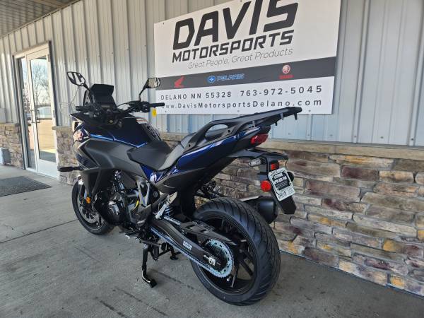 GET YOUR 2025 HONDA NT11OO DUAL CLUTCH SPORT TOURING BIKE NOW AT DAVIS MOTORSPORTS IN DELANO. THIS BIKE IS IN STOCK NOW! MSRP IS $ 11,899.00 + $ 775.00 freight. Welcome to the world of modern sport touring, and the new 2025 Honda NT1100. Using the same versatile engine architecture of our legendary Africa Twin, the NT1100 reimagines it in an all-new chassis designed with both sportbike responsiveness and touring-bike comfort. Add in sleek bodywork, excellent ergonomics, optional detachable saddlebags and a generous fuel capacity, and the new NT1100 will take you on the roads less travelled—the ones that provide the biggest rewards. The NT1100 offers an excellent powerband for sport touring. The parallel-twin design is narrow, and delivers torque everywhere from idle to redline. Matched with an industry exclusive Honda Dual Clutch Transmission, (DCT). The Honda revolutionary automatic DCT gearbox offers the best of both worlds: steel gears for durability and direct power transfer, and with the flip of a switch the choice between automatic or manual mode with paddle shifters. The throttle-by-wire system expands the bike's versatility. You get four levels of Honda Selectable Torque Control and five power-delivery modes, including Tour, Urban, Rain, and two rider-customizable options. Hondas commitment to superior handling extends beyond aesthetics, and the NT1100 is the prime example. Solo, two-up or with loaded saddlebags, the NT1100 handles predictably and gives you excellent feedback. Equipped with a nitrogen-filled remote-reservoir shock, you get the perfect blend of comfort and performance, elevating your riding experience. Advanced Anti-Lock Braking System (ABS) helps ensure your safety and control, whether you're navigating urban streets, riding in wet conditions, or exploring unfamiliar roads. Both Apple CarPlay™ and Android Auto™ seamlessly integrate your mobile devices into your bike via wireless Bluetooth® technology. Combined with the 6.5-inch display, it’s a great option for intuitive navigation and many of your favorite apps. The conveniently located, weather-protected USB-A connection lets you charge your devices on the go. Heated grips are more than just a luxury. In cold weather you can ride with thinner gloves for better road feel through the handlebar and grips—exactly what you want when the roads get twisty. When it comes to lighting, the NT1100 embraces an all-LED lighting package, offering lighter, brighter, and longer-lasting illumination. The exceptionally generous 5.4-gallon fuel tank has plenty of capacity for long rides, especially when paired with our super-efficient engine. On a bike built for long distance, a comfortable seat is a must. With almost three inches of padding, the NT1100 lets you ride all day long, day after day. Easy single-handed operation lets you move the windscreen through 6.5 inches of adjustment, for maximum wind protection or cooling airflow. Honda has set the bar for Sport Touring with the 2025 NT1100DCT! Great finance options on approved credit. MSRP does not reflect applicable freight, tax and license fees. All rebates to dealer. See this great bike at Davis Motorsports in Delano or call us at 763.972.5045 if you have questions. ktm triumph yamaha ducati bmw