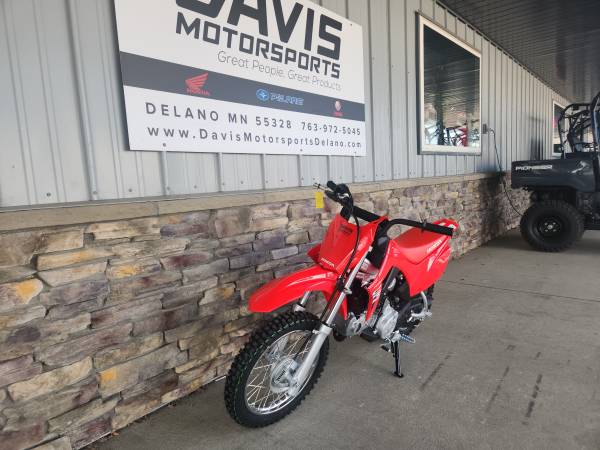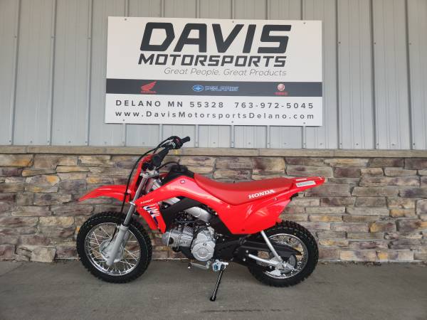 GET YOUR NEW 2026 HONDA CRF110 YOUTH DIRT BIKE NOW AT DAVIS MOTORSPORTS IN DELANO. MSRP on this bike is $ 2,799.00 + $ 300.00 freight. Say hello to the perfect bike for young riders – the CRF110F. It's easy to operate and maintain with an electric starter, automatic clutch, semi-automatic transmission, and fuel injection. And the durable chassis and robust four-stroke engine make it tough enough to hit the trails. Get your young rider smiling today! The Honda four-stroke single-cylinder engine provides smooth and reliable performance, making it ideal for a broad range of riders, including beginners. Fuel injection ensures easy startup in cold weather, reduces emissions and improves performance and fuel efficiency compared to carbureted bikes. Turn a screw to set the top speed and match the power to the rider's skill level, preventing new riders from going too fast too soon. For new riders, there is no clutch lever to master, so there's no chance of stalling. Simply shift with your foot, as the smooth transmission offers four gear ratios. Push a button and go—that’s how easy it is to get going. Starting the engine after a tip-over is easy, and the push button prevents frustration in case of an accidental engine stop. Even if your bike has a dead battery, you still can get going with the kickstarter. It’s easy for you to use and helps ensure your fun day doesn’t stop. You decide who rides and when because you hold the keys. Got your homework done? Good—let’s ride! Get your new rider going on this Honda from Davis Motorsports in Delano or call us at 763.972.5045 if you have questions. yamaha ktm suzuki kawasaki