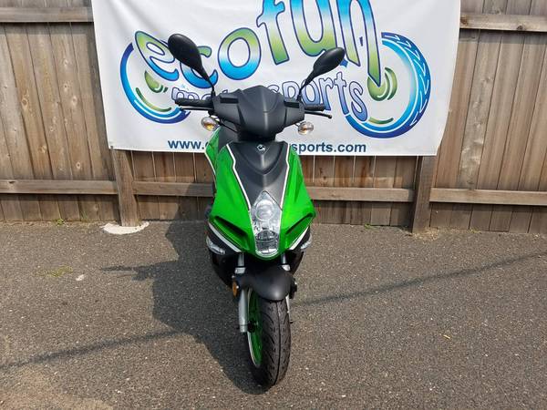 The Bintelli Scooters flagship model! The Scorch has been our top seller and it's easy to see why! It features 12" tires, aggressive styling, and enough seating to comfortably fit two riders. Available in Green, Black, Blue, and Red , it's easy to see why it's so hard for us to keep this model in stock! As with our other scooters, the Scorch comes fully loaded with many upgraded features such as Duro Tires, Yuasa Battery, NGK Spark Plug, Gates Belt, Halogen Headlight, Stainless Steel exterior hardware, and a 2 year limited warranty. Stop in to look at it today. All of our scooters are fully assembled, road tested and ready to go home today. Feel free to call with any questions. We can accept credit cards, cash or finance it for only $55 a month. Sale price does not include sales tax, dealer freight, license and title fees. Buy with confidence from a local 16 year old FULL Service Scooter dealership that is open year long for your needs.
