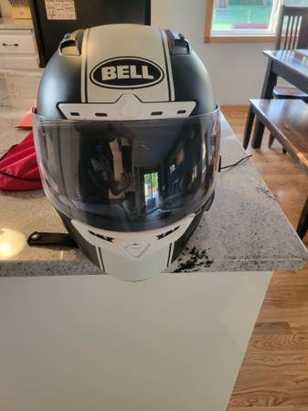 Bell full face motorcycle helmet. Has a Sena sound and communication system installed. Size - Large Basically in new condition. Never been in an accident.