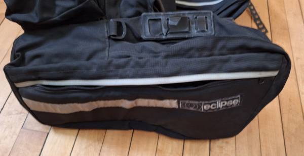 Slightly faded. Very functional with many storage pouches. All zippers work. Tough. Even withstood a bear pawing at it in Riding Mountain National Park in Canada.