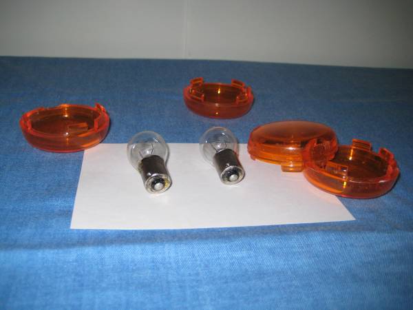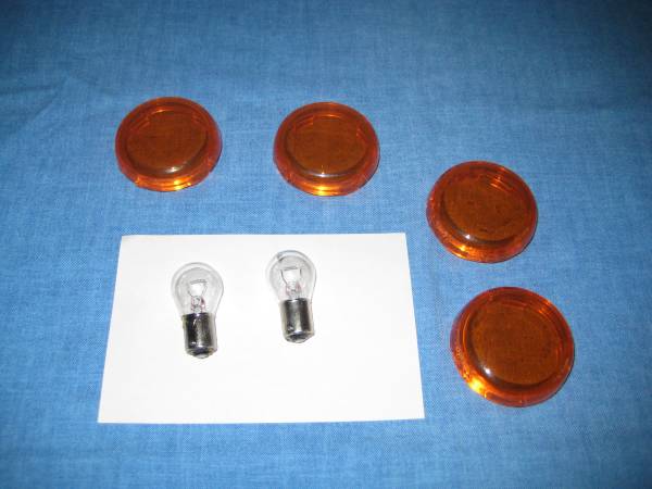 Harley Davidson - Four amber signal lenses and 2 bulbs. Bullet turn signal inserts.