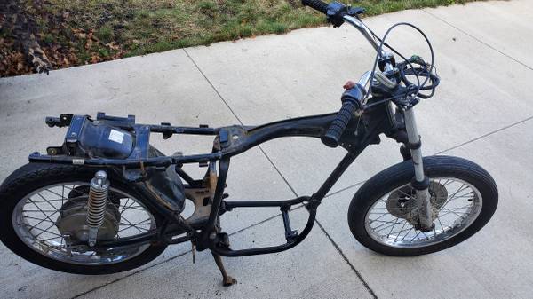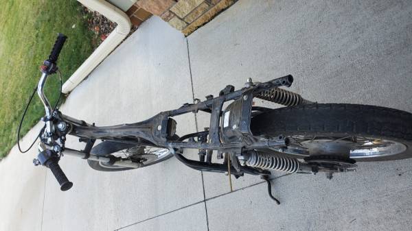 1974 Honda CB360 rolling frame. In good straight shape and only very minor rust. Includes everything shown. Title is not included.