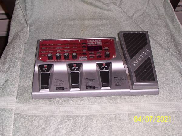 Boss ME 20B Bass Multi effects pedal near new in original box. This is nice and lightly used. I powered it up with batteries the battery compartment was clean. Terms are cash and you can get it in Nelson / Alexandria area or if it is fully paid for I can mail it. If you need to you can make and offer. Best to make the offer before you make the trip..