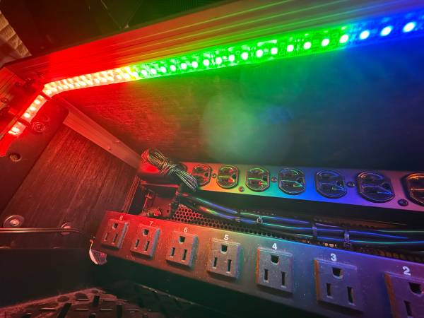 I installed a multi-colored LED strip to make it easier to see inside the rack. You can easily remove it if it’s not your thing.