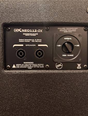 Gallien-Krueger NEO IV 1x12 bass cabinet. This cab is basically new with 1 hour use. Just a bit too much for my space. Quite portable and sounds incredible. This one comes in at 30lbs. Thank you.