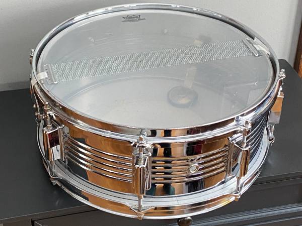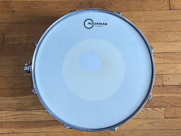 14" head diameter, 6 .5 total depth, 5 inch head to head, Aquarian Batter head, Remo weatherking snare side head, snares, throw off, butt plate, eight lug, internal tone control muffler