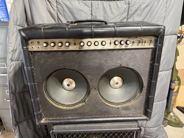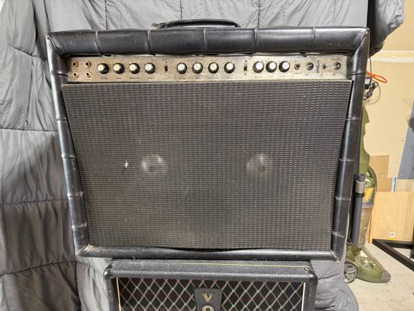 Plush amplifiers were made in USA, hand wired and based on fender pre CBS amplifier blackface circuits according to sources. This 450 Twin has been sitting for 50 years and needs a total rebuild by someone with experience. All original tubes, speakers and electronics. Plush covering is in ok shape considering age. Looking for reasonable offers. If interested or questions please send contact info. Lots of information on line on Plush Amps.